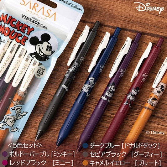 Sarasa Clip x Mickey Mouse 0.5 mm Vintage Color Gel Pen Set