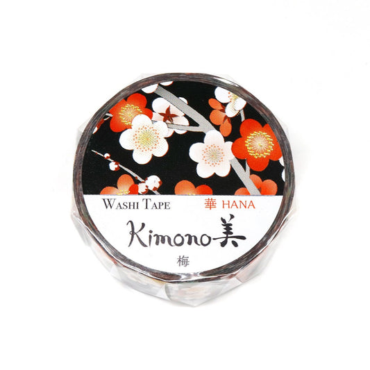 Kimono Hana Series Gold Foil Washi Tape - Red & White Plum